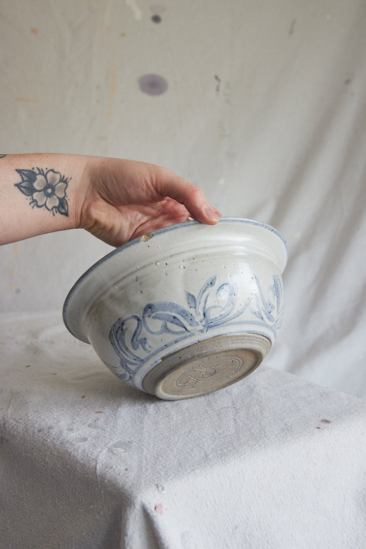 *Please note: Due to the pitting imperfections in the glaze of this piece, we do not believe that it is food safe. We recommend that this be used as more of a decorative piece.